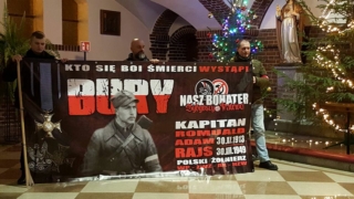 Jak można uczcić żołnierza spoczywającego w “dole śmierci”? Odśpiewano hymn Polski, tej Polski, za którą walczył i zginął. Kładący na płycie pomnika zapalone białe i czerwone znicze, myślą byli przy Kapitanie “Burym”, odmawiając modlitwę, każdy w cichości serca Bogu polecał Jego duszę. Rozpostarte banery jak wyrzut sumienia wołały o pamięć i prawdę, o tym najbardziej znienawidzonym z Żołnierzy Wyklętych. Nie było człowieka, który w tych minutach nie zasmakował wzruszenia. Zaś nadzieją i otuchą napawał widok dzieci, a także bardzo młodych ludzi , wszak „Takie będą Rzeczypospolite, jakie ich młodzieży chowanie…” Po tych uroczystościach w skupieniu uczestnicy rozeszli się do swoich codziennych spraw, by za kilka godzin spotkać się znowu, tym razem w kościele.