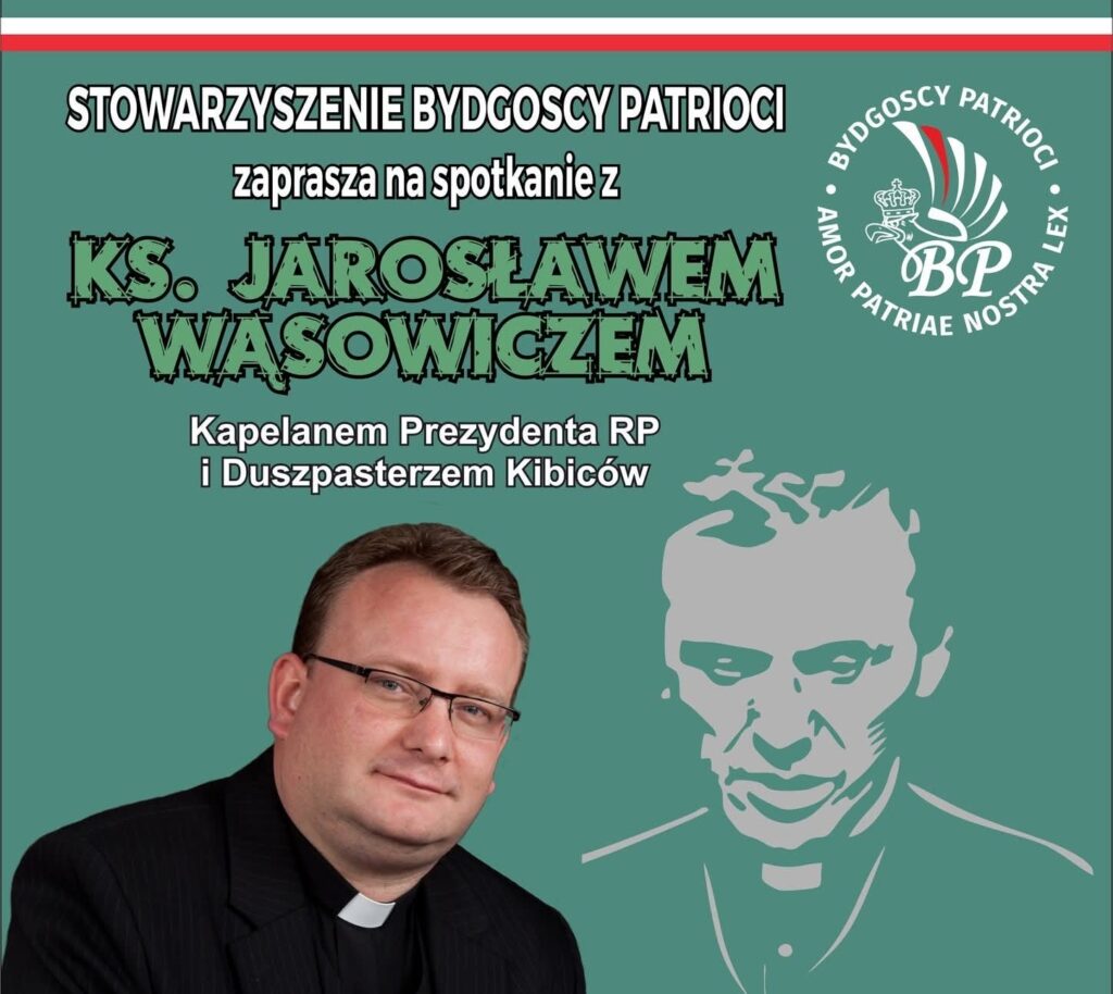 W sobotę 11 października gościliśmy w siedzibie Stowarzyszenia Bydgoscy Patrioci ks. Jarosława Wąsowicza. Salezjanin ks. dr hab. Jarek Wąsowicz, to człowiek orkiestra, skuteczny organizator i tytan pracy. Historyk, kibic Lechii Gdańsk i działacz opozycji antykomunistycznej, archiwista kościelny. Autor wielu książek, kapelan kibiców, organizator kibicowskich pielgrzymek na Jasną Górę, oraz na Wileńszczyznę. Pomysłodawca i koordynator akcji …